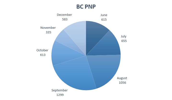 The below chart gives a summary of invitations issued by the province over the last several months.