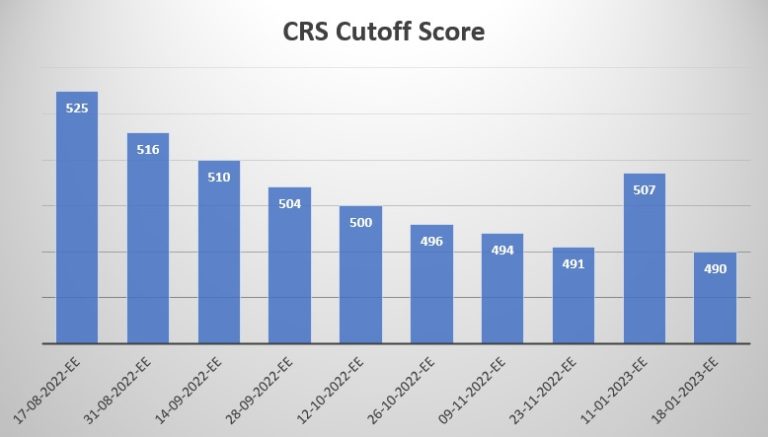 As you can see in the above graph, the cut-off CRS score of this draw has clearly come below the cut-off CRS score of the draw that was held on 23 November. In our previous article (Read the Full article here) our experts had made this prediction. In that article, we had furnished the reasons why the cut-off CRS score of January 11 draw went beyond its preceding draw, as well as the projected a trend for the upcoming draws in 2023 so that Immigration, Refugees and Citizenship Canada (IRCC) can meet the multi-year immigration target it has set for 2023-25, i.e., to welcome over 500,000 new immigrants by the end of 2025.