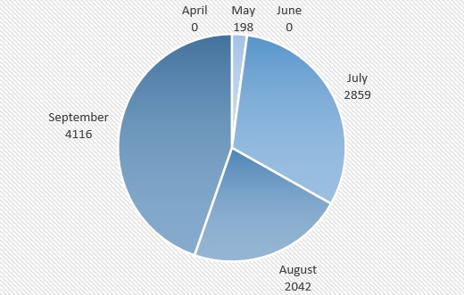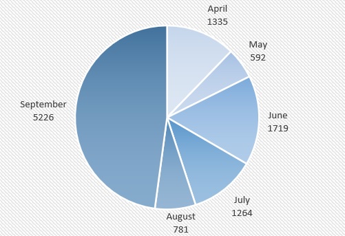 The province of Saskatchewan, through Saskatchewan Immigrant Nominee Program (SINP) held invitation rounds on the 1st, 6th, 7th, 15th and 28th of September. A total of 4,116 candidates were invited to apply for a provincial nomination in these draws. Saskatchewan issued 2042 invitations in the previous month, which you can read here. The below chart is a summary of the number of invitations issued by the province over the last 6 months.