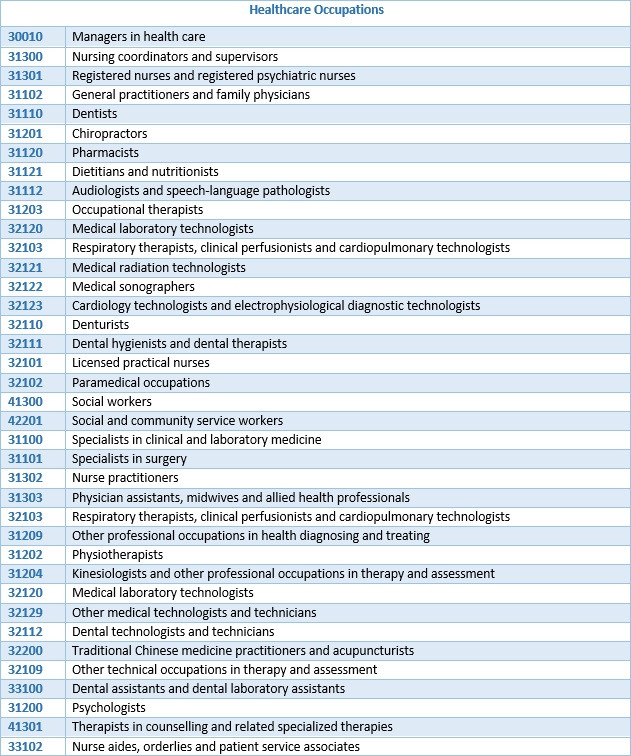 Below is the updated list of the province’s priority occupations, along with their NOC code