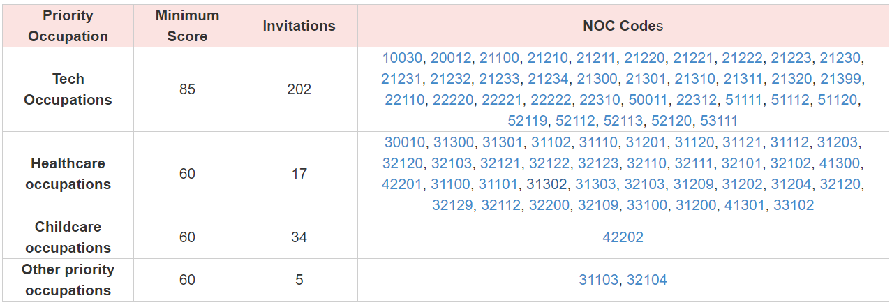 The targeted draw issued invitations to 258 candidates in five different categories: